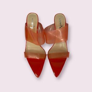 Vinianty Orange Tan Pointy Toe Sexy High Stiletto Heels Size 10. there are two plastic that go around the ankle and base of foot.
