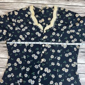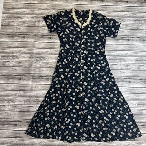 Vinita Women's Floral Button Front Dress VTG Vintage M Med Medium Blue Collared