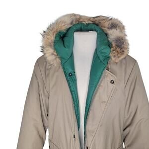 Vinitage Fieldmaster By Sears Fur Collar Zipper & Button Front Mid Length/Long Winter Down Heavy Coat Jacket Size L