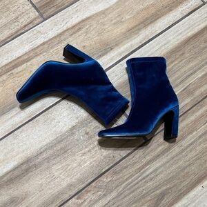Step out in style with these elegant blue velvet boots. Perfect for any occasion, these boots offer both comfort and sophistication.