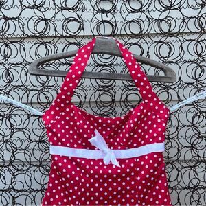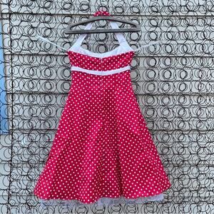 Vint. 90s ZUM ZUM red white polkadot halter pinup rockabilly prom cocktail dress