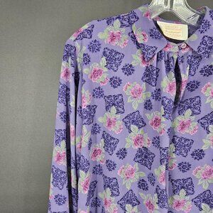 Vintage Pendleton Blouse Womens 14 Purple Floral Long Sleeve Country Sophisticates 90s Secretary Business Dress