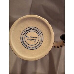 This very nice hand painted black and white striped Zebra handle mug will hold 16oz. Beautiful condition. The size is 5 3/4" tall and 3 1/4" at the top. No chips, cracks or crazing.