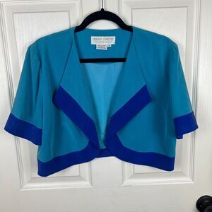 Vintag 90s Maggie London by Kenneth Nolan 100% Silk Cropped Blue Blazer Size 6