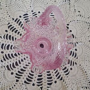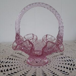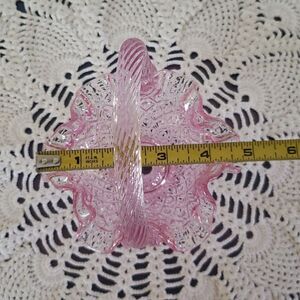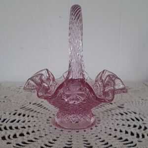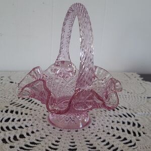 Vintag Fenton Art Glass Pink Glass Ruffled Small Basket Twisted Handle