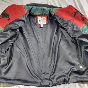 Vintag Kathryn Deene Womens 14/16 Red Wool Toggle Button Jacket Cowboys Horses