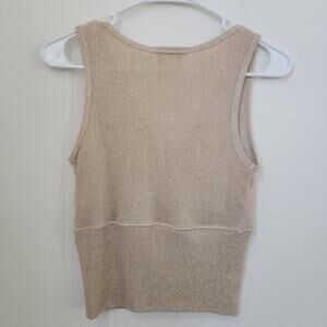 Vintage 00s Cache Gold Shimmer V-Neck Sleeveless Medium Cami Top Glam Faux Wrap