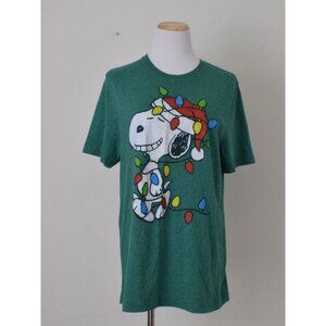 Vintage 00s Green Snoopy Christmas Shirt size XL