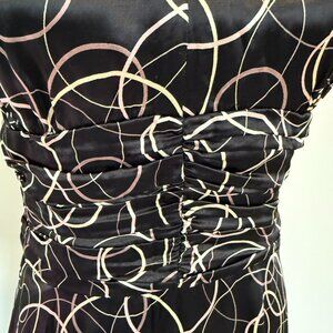 Vintage dress from the 2000's from Harold's. Black with brown and tan circles. Size 6. Gently worn with no visible flaws. Zips in back.