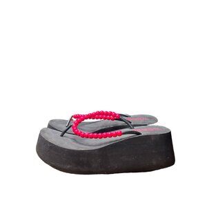 Vintage 00s Y2K Esprit Women's 9 Black Foam Chunky Bead Platform Sandals Shoes