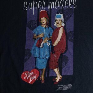 Vintage 00s Y2K I Love Lucy Supermodels TV show faded black shirt