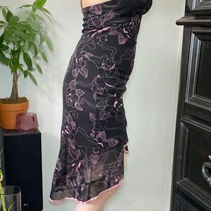 Vintage 00s / Y2K Windsor Sweet Pink Contrasting Roses Black Hi-Low Dress