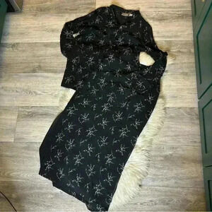 Vintage 00s black floral semi sheer long sleeve midi maxi skirt matching set 10