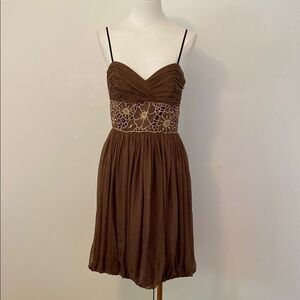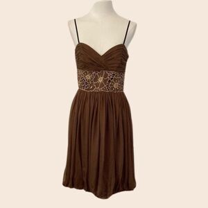 Vintage 00's Laundry by Design Brown Bubble Hem Ruched Silk Dress Size 4