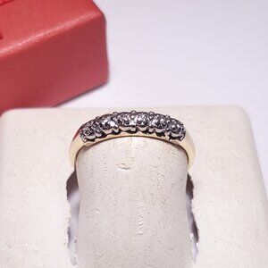 Vintage .06ctw Natural round Diamond 14Kt 2Tone Gold S-7.25 Band Ring #23065