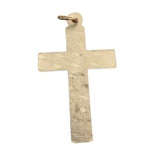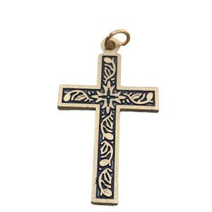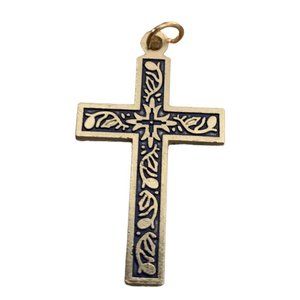 Vintage 1 1/4" Silvertone Pendant Cross Blue Embossing Jewelry for Necklace