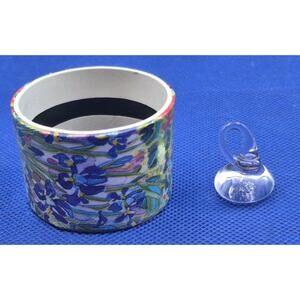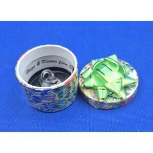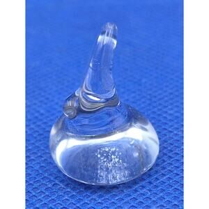 This product is a vintage 1" blown glass clear chocolate kiss in a tiny gift box. Handcrafted in the United States in the 1990s, this original decorative collectible is made of glass. The clear color and delicate design make it a perfect addition to any collection or as a unique gift for someone special.