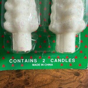 Vintage 10" Christmas Tree Candles White Gold Taper w Star Topper Set Of 2
