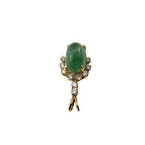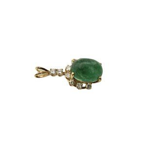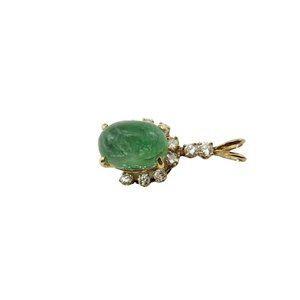 Vintage 10 Karat Yellow Gold Jade and Diamond Pendant GAI Certified-