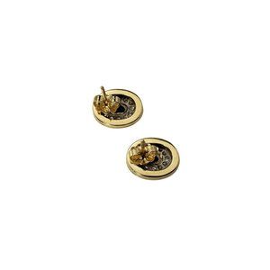 These elegant earrings each feature one oval sapphire (4 mm x 3 mm) and 12 round brilliant cut diamonds set in 14K yellow gold. Push back closures.