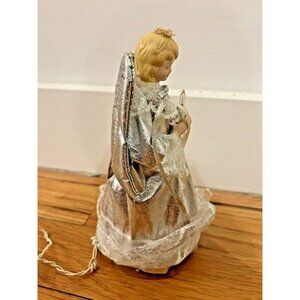 Vintage 10 Light Angel Porcelain Head Silver Dress Christmas Tree Topper 8.5"