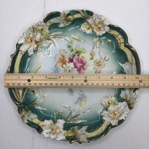 Vintage 10" Prussia Decorative Turquoise Floral Ceramic Plate Hanging White Pink
