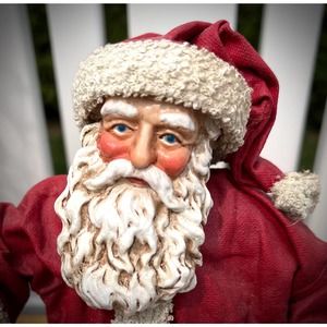 Possible Dreams Clothtique Santas are made from a proprietary stiffened fabric material, porcelain, and added cloth and stuffing for a softer appearance than standard figurines. They feature intricate facial details, decorative accents, realistic accessories, and hand-painted style.