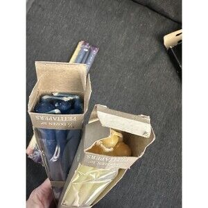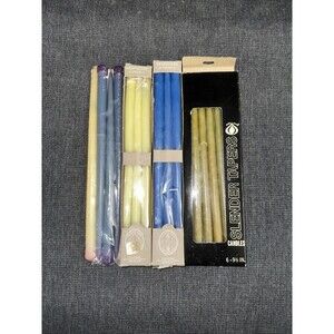 Lot of vintage candles. Four pack has 3 blue and 1 ivory, one 6 pack Lime, one 6 pack Persian Blue, one 6 pack of 9.5