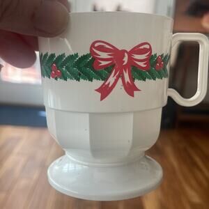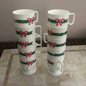 Vintage set of 10 celluloid cups with handles for cold or hot drinks. One has chip as shown. So festive