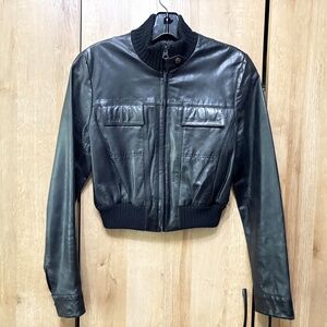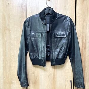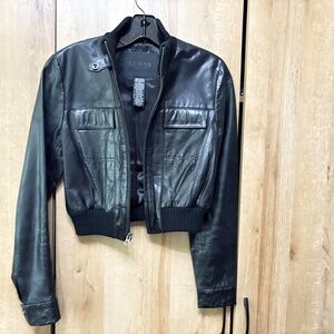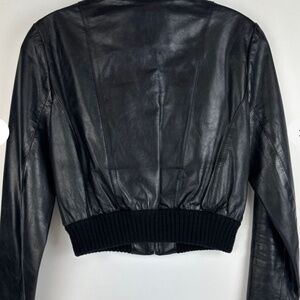 Vintage Guess Collection 100% Genuine Leather Black Cropped Bomber Aviator Style Jacket Women XS
