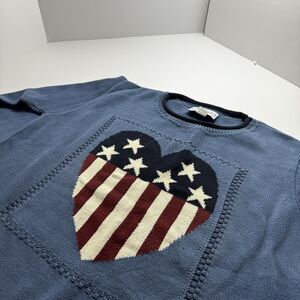 Vintage 100% Handknit Heart American Flag Blue Crewneck Sweater Woman's Size XL
