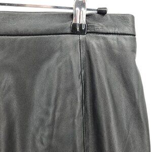 Vintage 100% Leather Pencil Skirt in size Large, color black. Great used condition with very few if any signs of wear, no flaws. Features: comfy elasticized waist with hidden back zip and tab closure; full lining; flat/seamed front, back slit. Substantial and structured looking. Perfect edgy work-to-drinks piece, a true investment piece. Fit note: this was a touch too big on me (size 8, waist about 15.5" across); I think it would be perfect on a size 10-12 given the extra stretch and room in the hips.