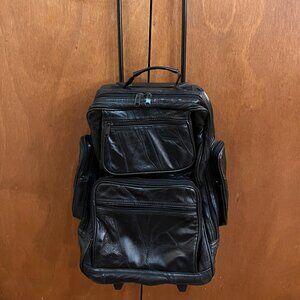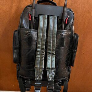 Vintage 100% Leather Rolling Luggage Backpack – Patchwork Style – Convertible