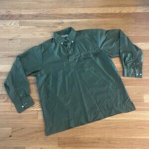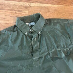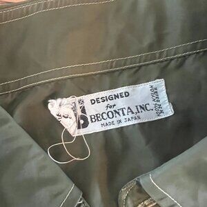 This is a super cool Vintage MADE IN JAPAN 100% Nylon Green Beconta Pullover Button-Down Lightweight Shirt in a size Men's Medium. Very lightweight and airy.