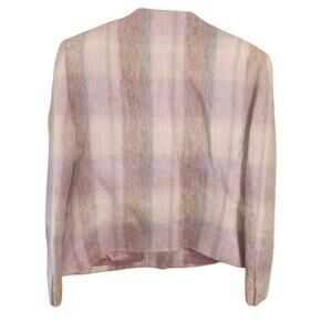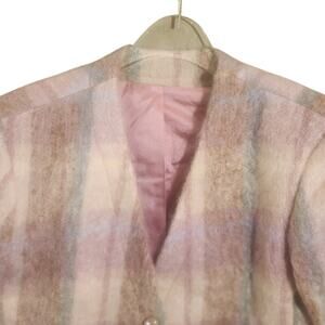 Vintage 100% Pure Wool Pink Green Tan & Cream Plaid Blazer Size 12