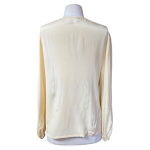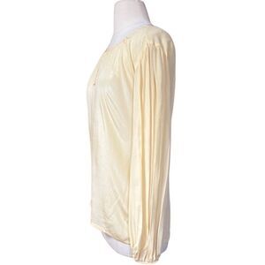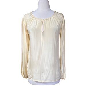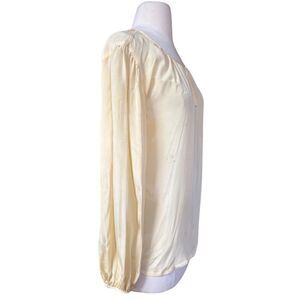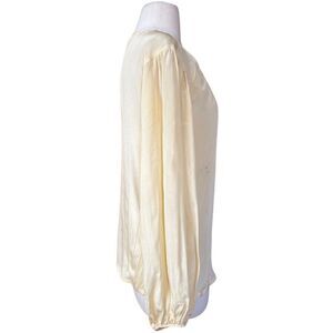 Vintage 100% SILK Light Yellow Boho Keyhole Front Peasant Balloon Sleeve Blouse