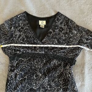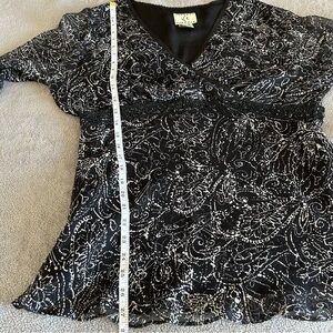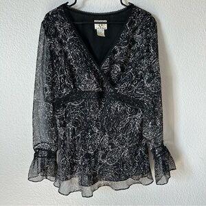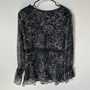 Vintage 100% Silk 90s Sheer Black and White Lace Blouse Top with Bell Sleeves