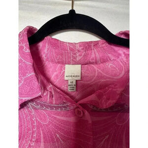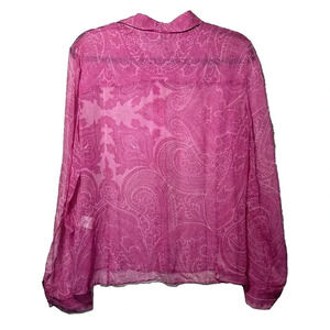 Vintage 100% Silk Anne Klein Long Sleeve Sheer Button Up Women Sz 12 Cowgirlcore