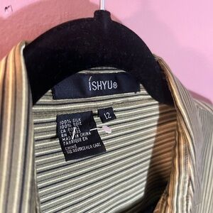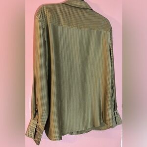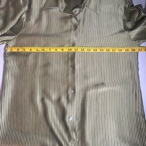 Vintage 100% Silk Button Down striped base layer career work Blouse Top Sz 12