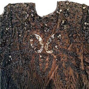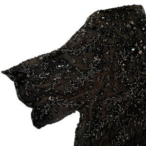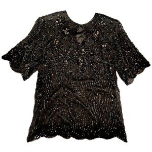 Vintage 100% Silk Exotica 80s Black Heavily Beaded Blouse