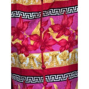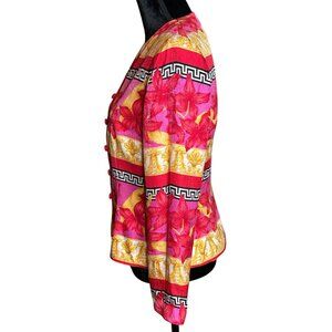 Vintage 100% Silk Floral Patterned Button Up Light Soft Jacket Vibrant Pink Gold