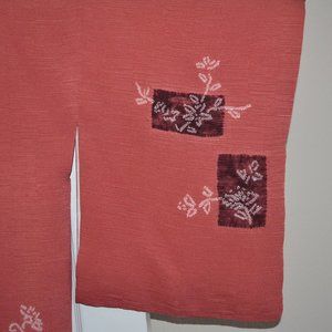 I purchased many Japanese antiques from an antique dealer in Kyoto Japan 20 years ago including these haori jackets and now selling from my collection. It is a beautiful brandy/rose color with floral embroidered accents in contrasting colors. Wear with jeans for a Boho look or with pants, skirt or dress. Kyoto Japan is known worldwide for quality silk handmade kimono. It feels luscious on the skin, with silk lining. It is not lightweight, will keep you warm. There are no stains, tears or worn areas. Measures approximately 24" across at the chest, and 30" long. The sleeves are 20" x 12" (The sleeves are pockets - carry your cell phone in it :) One size fits all.