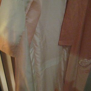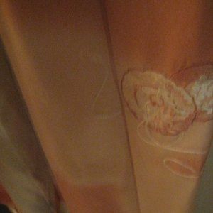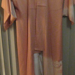 I purchased many Japanese antiques from an antique dealer in Kyoto Japan 20 years ago including these kimono and now selling from my collection. This is a Tomesode, a formal gown worn by married women. You will need an Obi or belt to wear it in the traditional fashion. Plan a Kimono wedding or show up at a formal affair in this gown and watch the eyes pop! It is a beautiful pink/rose color with floral embroidered accents. Kyoto Japan is known worldwide for quality silk handmade kimono. It feels luscious on the skin, with silk lining.There are no stains, tears or worn areas. Measures approximately 24" across at the chest, and 62" long. The sleeves are 19" x 13" (The sleeves are pockets - carry your cell phone in it :) One size fits all. See my other two kimono in my closet.