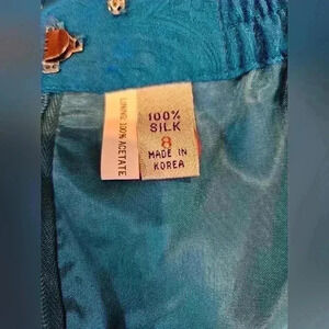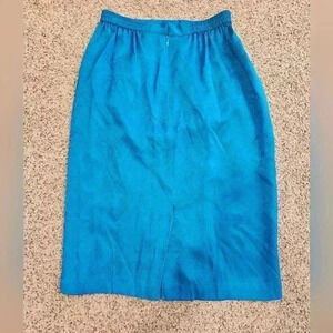 Vintage 100% Silk Midi Skirt with Paisley Design & Back Zipper Enclosure Size 8. Front pleats and back elastic on the waist give a figure flattering look. Please see the measurements. Back center slit. Fun and lightweight! Good condition.