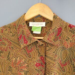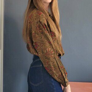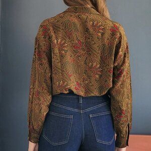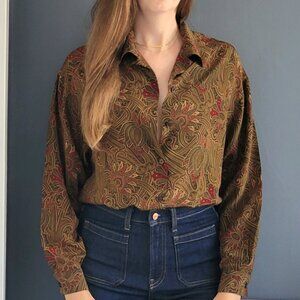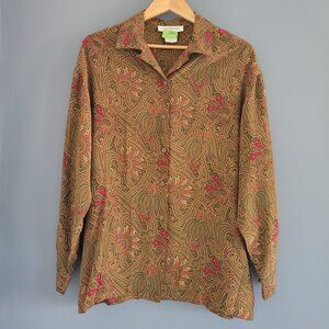 Vintage 100% Silk Paisley Button Down Blouse - Size 12