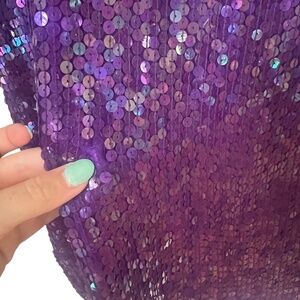 Vintage 100% Silk Purple Sequins Long Top Plus Size