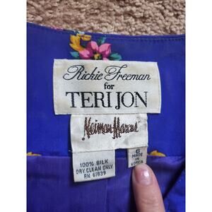 Vintage 100% Silk Quilted Blazer Skirt Set Rickie Freeman for Teri Jon, Size 6