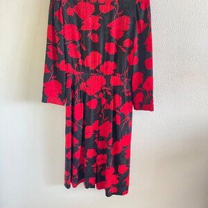 Vintage 100% Silk Red Roses Full Length Valentine's Day Dress