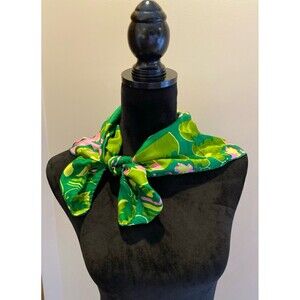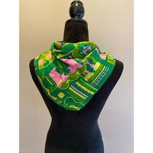 Vintage 100% Silk Scarf by Baars & Beards Green Pink Abstract Design 26x26 EUC