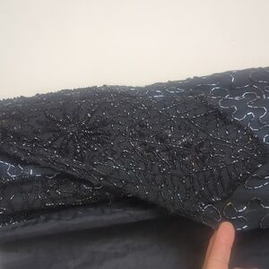 sequenced silk bodice with rayon lining ,v-neck ,eye hook closures on the front beaded paneling. structured shoulders